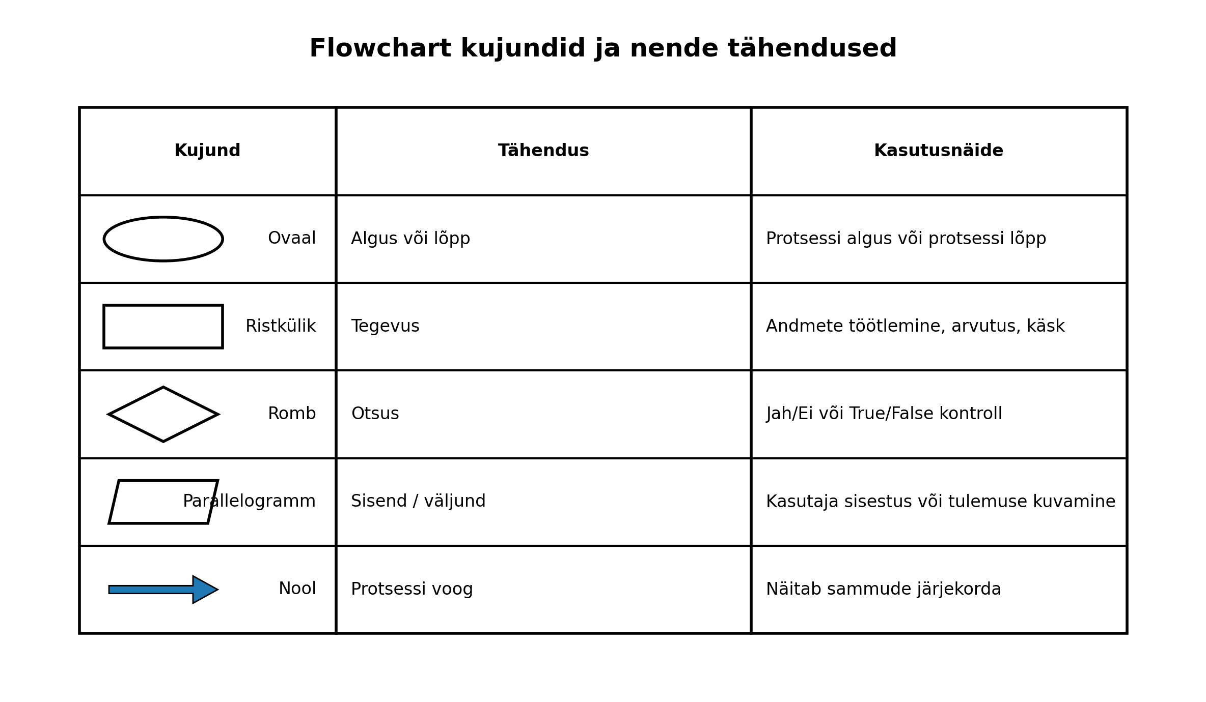 Flowcharti kujundid, tähendused ja kasutusnäited